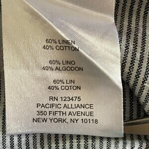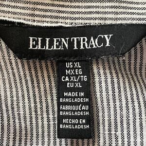Ellen Tracy Linen Blend Popover Tunic Stripes Roll Tab Sleeves Lace Detail Sz XL. 60% linen, 40% cotton. Micro striped in blue and white. Collared. Three-quarter sleeve with roll tab. Relaxed fit. In excellent preowned condition.