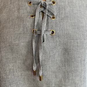 Ellen Tracy Linen Blend Popover Tunic Stripes Roll Tab Sleeves Lace Detail Sz XL