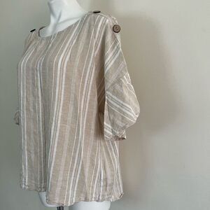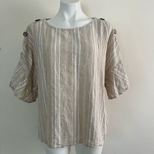 Ellen Tracy Linen Blend top ruffle sleeve