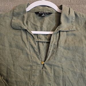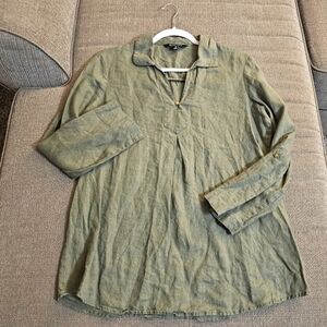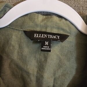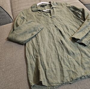 Ellen Tracy Linen Olive Green Casual Lagenlook Relaxed Top Blouse Size Medium