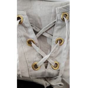 Ellen Tracy Linen Roll Tab Sleeve Tunic Top Size XXL Lace Up Neutral Sand Color
