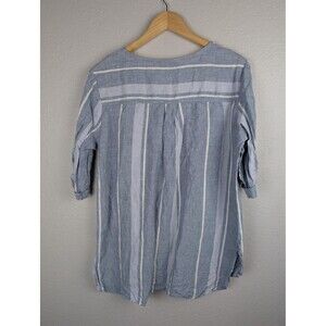 Ellen Tracy linen shirt. Women's size large. Blue with white vertical stripes.