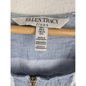 Ellen Tracy Linen Striped Zip Pullover Shirt Large