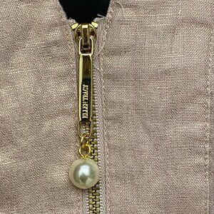 Ellen Tracy Linen Tunic Top in Blush Size Medium. Fabric has an iridescent gold sheen to it. 3/4 sleeves, round neck, gold zipper trim at neckline, relaxed fit