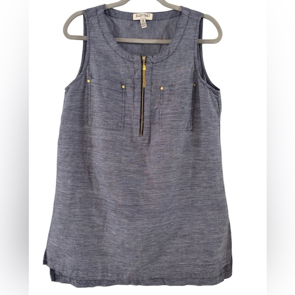 Ellen Tracy Sleeveless TunicTop with gold tone detailed zipper. denim look