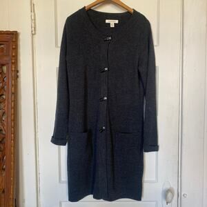 Ellen Tracy Long Duster Merino Sweater Gray Toggle Buttons Button Up Pockets