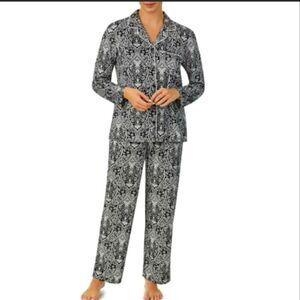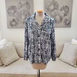 Ellen Tracy Long Sleeve Collared Paisley 2 Piece Pajama Set Sz XL