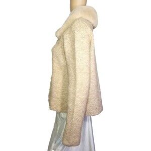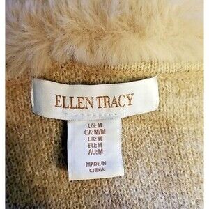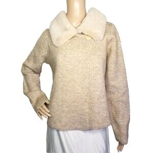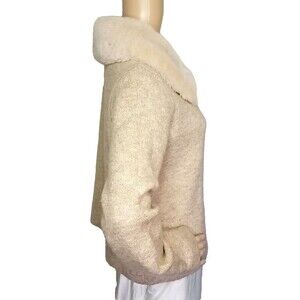 Ellen Tracy M Knit Cardigan Removable Faux Fur Collar Acrylic/Wool Blend NWT T53