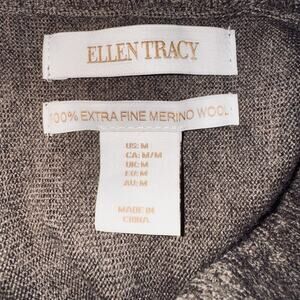 Ellen Tracy Medium Brown 100% Extra Fine Merino Wool Sweater Cable Cowl Cardigan
