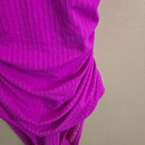 Ellen Tracy NWOT Pink On Pink Striped Ruched Ruffled Halter Swimsuit Size 6