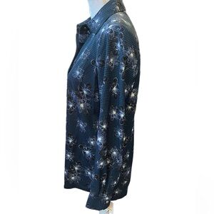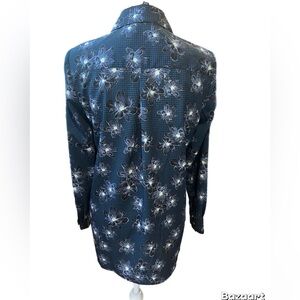 Ellen Tracy NWT Blue/black LonG Sleeve Blouse Floral Design Size Small