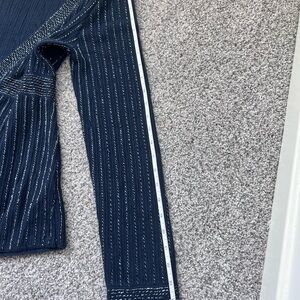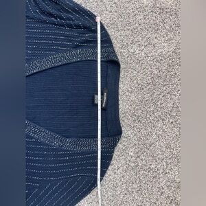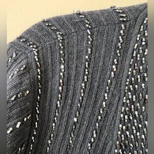 Ellen Tracy Navy Blue Beaded Embellish Full Sleeve Silk/Cashmere Top Size Large