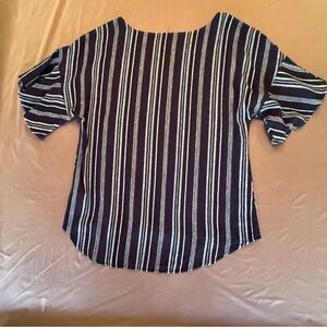 Ellen Tracy Navy/White Linen Ruffle Short Sleeve Blouse Size Medium MSRP $125