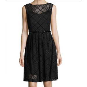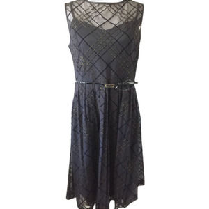 Ellen Tracy Nordstrom Black Gold Belted Fit and Flare Sleeveless Dress