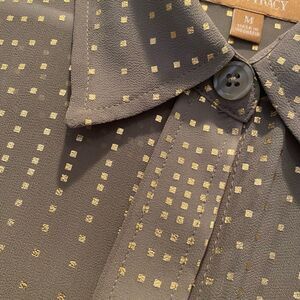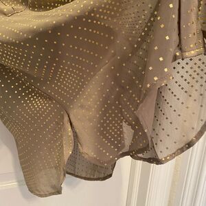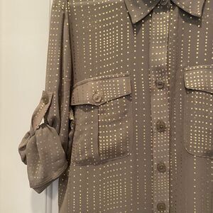 Ellen Tracy Olive Semi Sheer Gold Dotted Long Sleeve Blouse Size Medium
