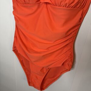 Ellen Tracy One Piece Swimsuit Coral Orange Ruffle Ruched Waist Womens 10 Beach