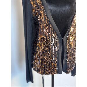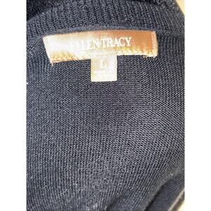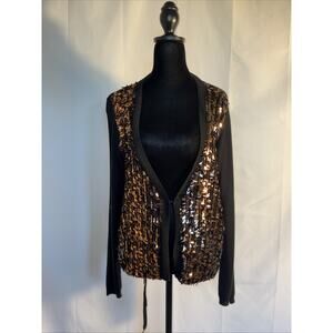 Ellen Tracy Open Cardigan Sweater Knit Sparkly Sequin Long Sleeve Black Womens L