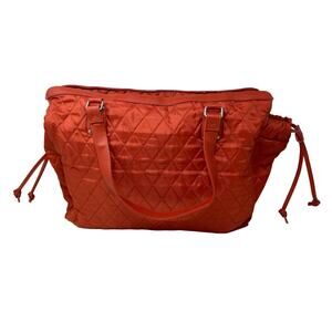 Ellen Tracy Orange Quilted Weekender Overnight Bag Tote Travel Duffle Pockets Large