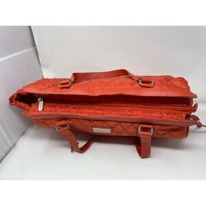 Ellen Tracy Orange Quilted Weekender Bag Tote Travel Duffle Pockets Large FLAW