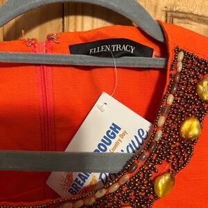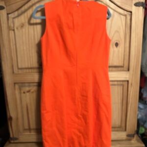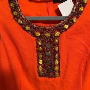 Great condition. Looks like not even worn. Size 6. Has beading around neck and down 7 inches. Round neck. Has 2 seams down front. Zips down the back. Very shic. Great color for fall or special occasion. Measurements are pit to pit 18 1/2 X 37 inches long. 100% Polyestee with lining underneath.