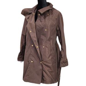 Ellen Tracy Outerwear Techno Double-Breasted Rain Trench Coat With Belt