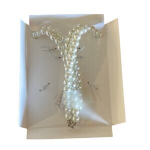 Ellen Tracy Pearl Necklace and Earrings Set New in Box Art Deco Glam Classic