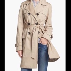 A classic belted trench coat with a peplum tier in the back. Wear dressed up or casual, rain or shine.