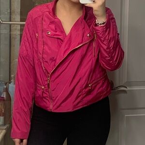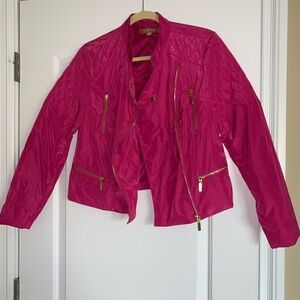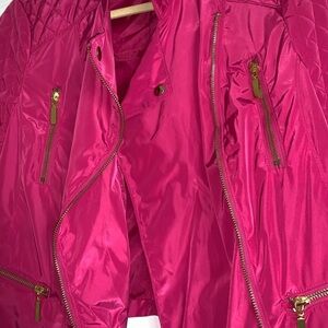 Perfect condition. No stains or holes. Very comfortable. Easy to move in. Gorgeous pink color. Gold zippers. Want more pictures or have questions, then just comment!!