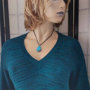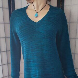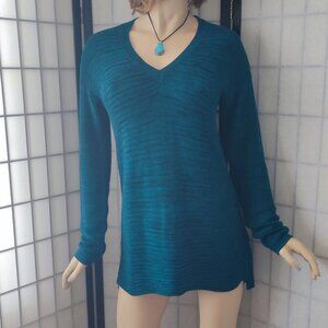 Ellen Tracy Pullover Sweater Medium Cotton Blend Stretchy Textured Knit Teal