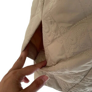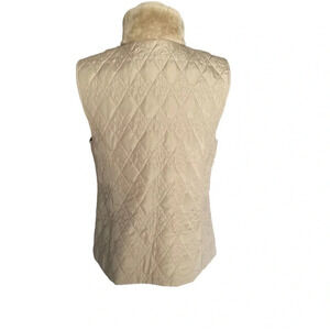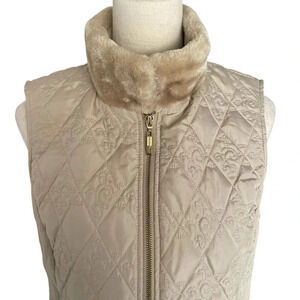 Ellen Tracy Quilted Embroidered Beige Sleeveless Vest Neutral Jacket Women Sz M