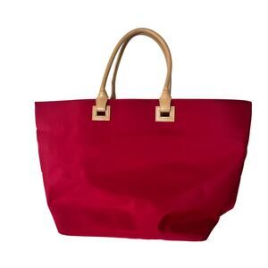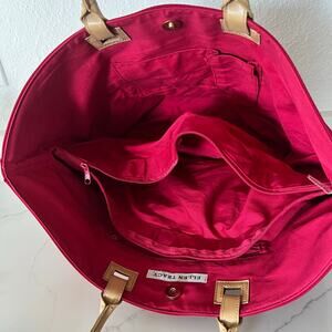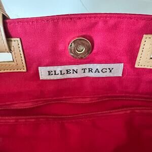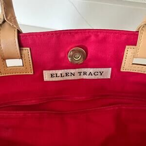 Ellen Tracy Red Faux Leather Handle Tote Bag, Compartments, Button Closure