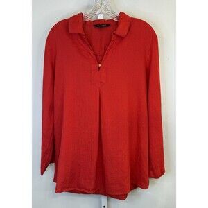 Ellen Tracy Red Linen Tunic Top Women’s Size Large Long Sleeve Pullover Blouse