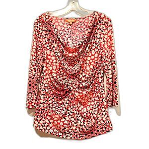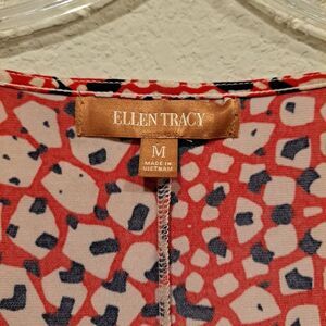Ellen Tracy ruched knotted front blouse top shirt red blue white womens size M
