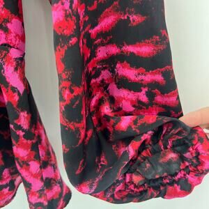 Ellen Tracy SMALL Pink Abstract Boho Long Sleeve Peasant Top Blouse Shirt