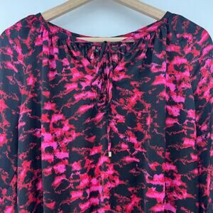 Ellen Tracy SMALL Womens Pink Abstract Boho Long Sleeve Peasant Top Blouse Shirt