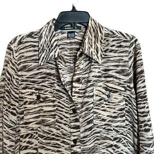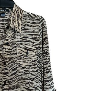 Ellen Tracy Shirt Dress 8 Multicolor Safari Silk Button Midi Roll Tab Sleeves