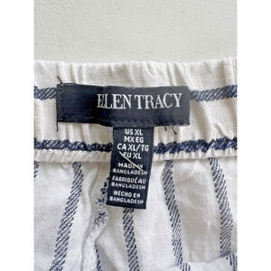 These Ellen Tracy shorts are perfect for women in size XL looking for a stylish and comfortable piece to wear during various occasions such as travel, activewear, party, casual outings, or workwear. Made from 100% linen knit fabric, they offer a breathable and airy feel, making them ideal for summer, fall, and spring seasons. The pull-on style with a drawstring closure and mid-rise fit provides a flattering silhouette. The white and blue striped pattern adds a touch of nautical flair, while the 4-inch inseam and slash pockets give them a practical and stylish look. Easy to care for with machine washable instructions, these shorts are a versatile addition to any woman's wardrobe.