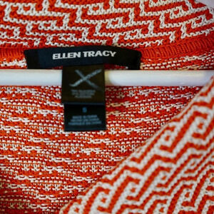 Ellen Tracy Silk Blend Orange and Ivory Geometric Cardigan Size Small