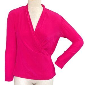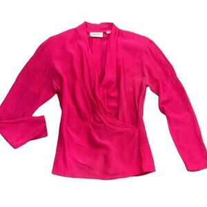 Ellen Tracy Silk Button Back Surplice Faux Wrap Blouse Sz 6 Pink 92Y