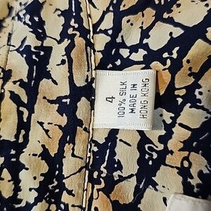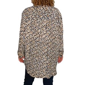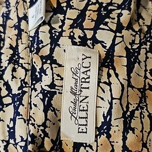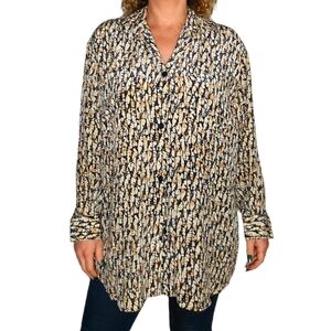 Ellen Tracy Silk Button-Up Long Sleeve Top Brown Black Size 4X