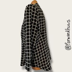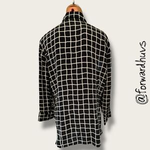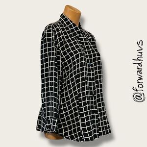 Ellen Tracy Silk Button-Up Shirt – Black & White Grid – Size 14