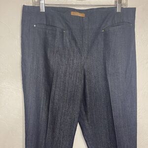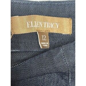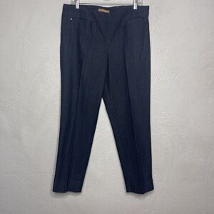 Ellen Tracy Size 12 Pants Straight Leg Ankle Cropped Side Zip Blue Stretch