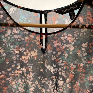 Ellen Tracy Sleeveless Blouse Medium Floral Sheer Pleated Ruffle NEW