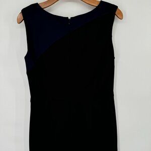 Ellen Tracy Sleeveless Color Block Sheath Dress Size 8 Navy Black scuba knit