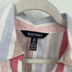 Ellen Tracy Striped 100% Linen Tunic with Collar Sz S