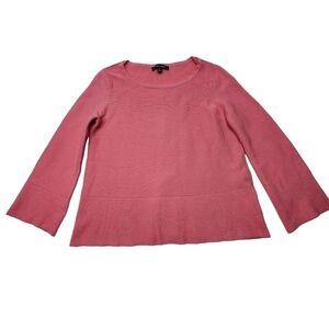 Ellen Tracy Sweater with Scoop Neck in Ribbed Knit. Pullover Style in Coral Pink with Wide, Long Sleeves, 75% Acrilyc, 25% Nylon