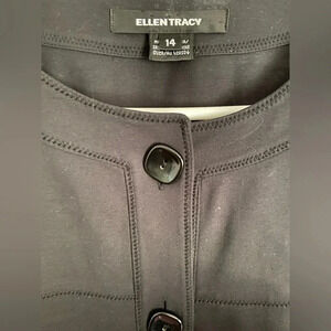 Black swing trapeze style button front jacket with elbow length sleeves. Ellen Tracy Sz 14. Perfect flattering condition. Fits generously due to swing style