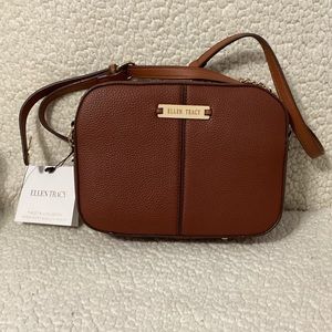 Ellen Tracy The Octavia Collection Cognac Pebble Grain Crossbody, NWT, MSRP $148