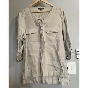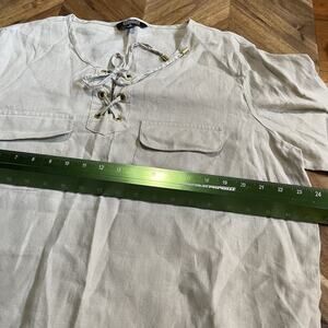 Ellen Tracy Top Linen Tunic Lace Up Neckline Boho Peasant Womens XL Lagenlook