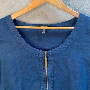 Ellen Tracy Top Sleeveless 3X Blue Linen Gold Tassel Zipper Coastal Lagenlook